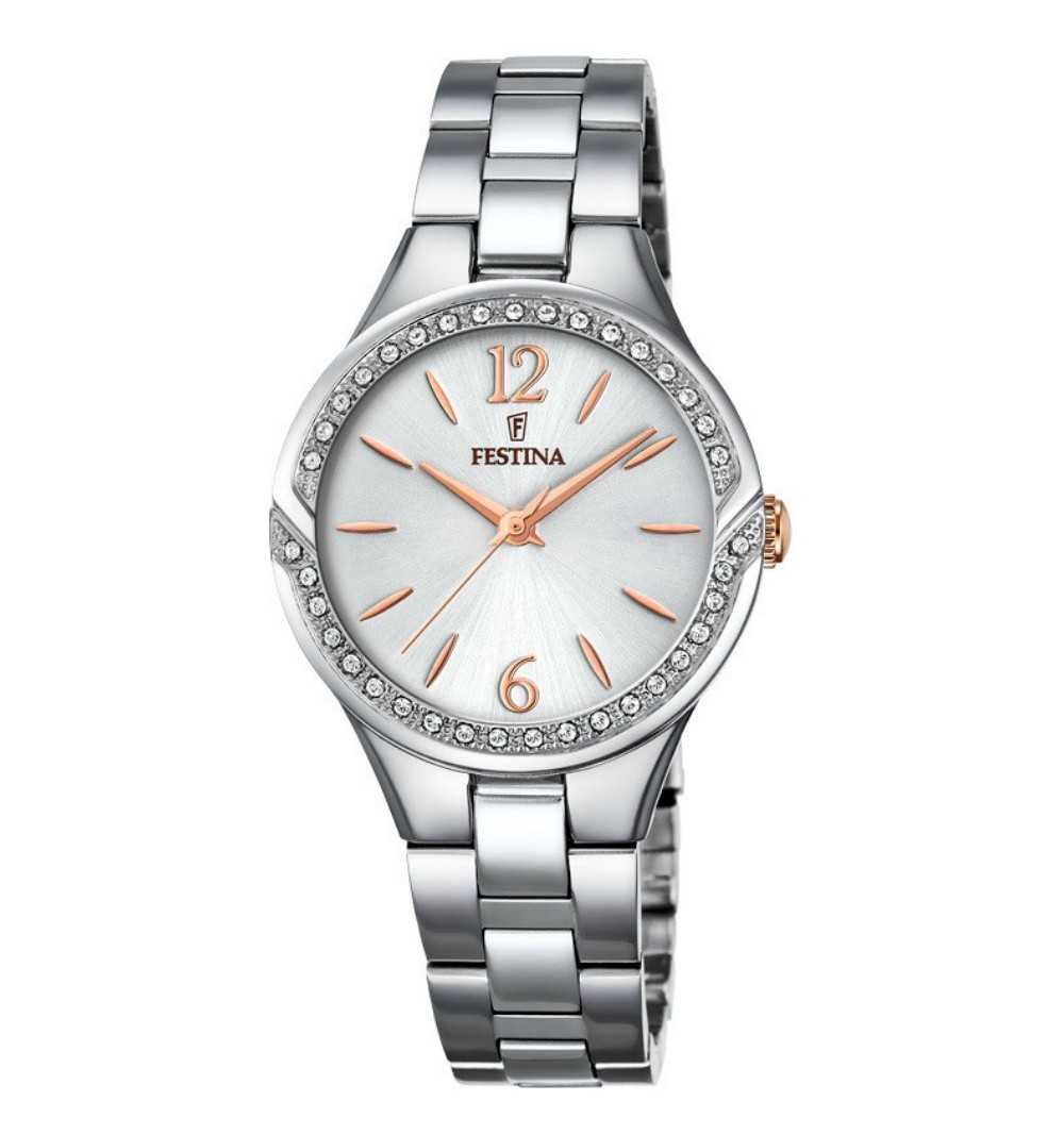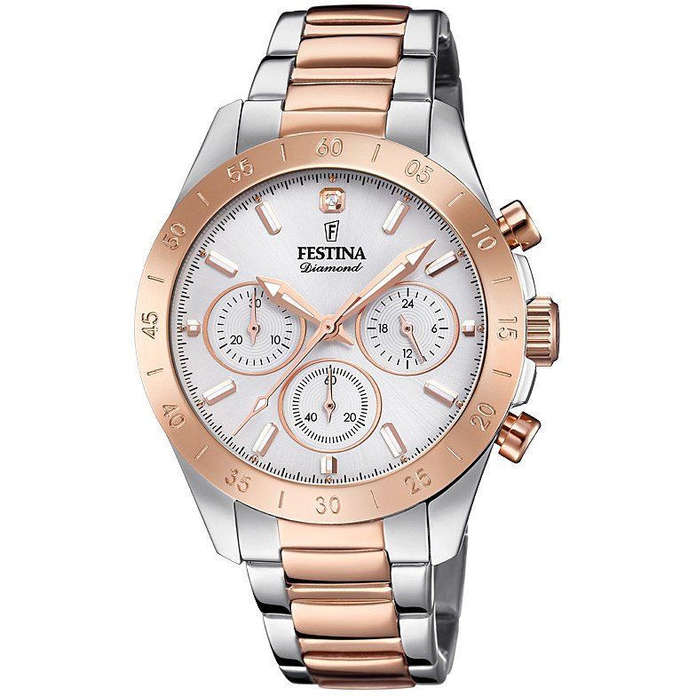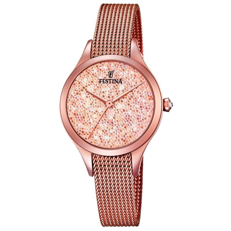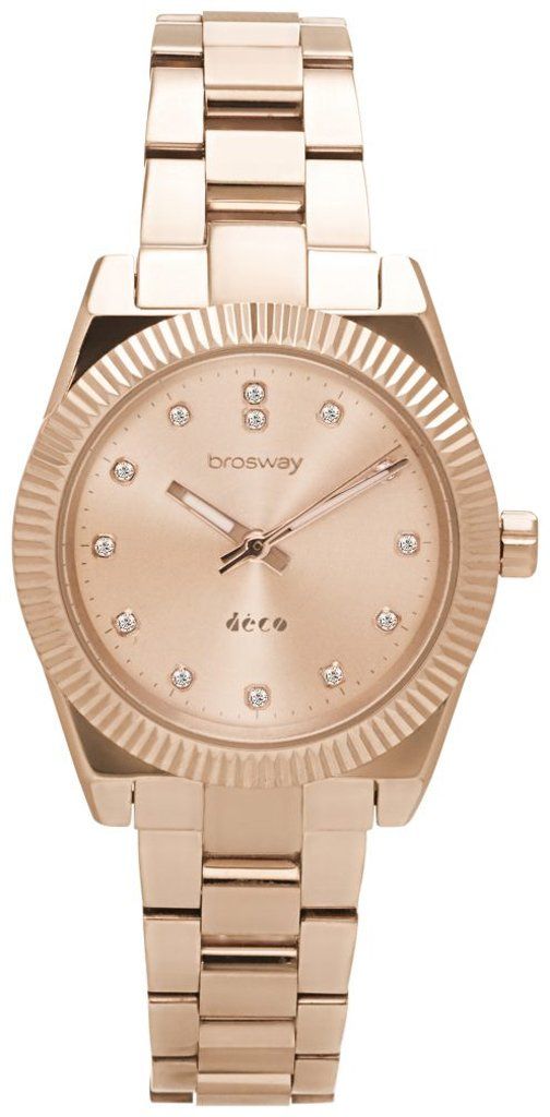 Cassa: acciaio inossidabile, pvd rose gold, diametro ø34mm, corona a pressione, vetro minerale, ghiera diamantata
