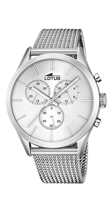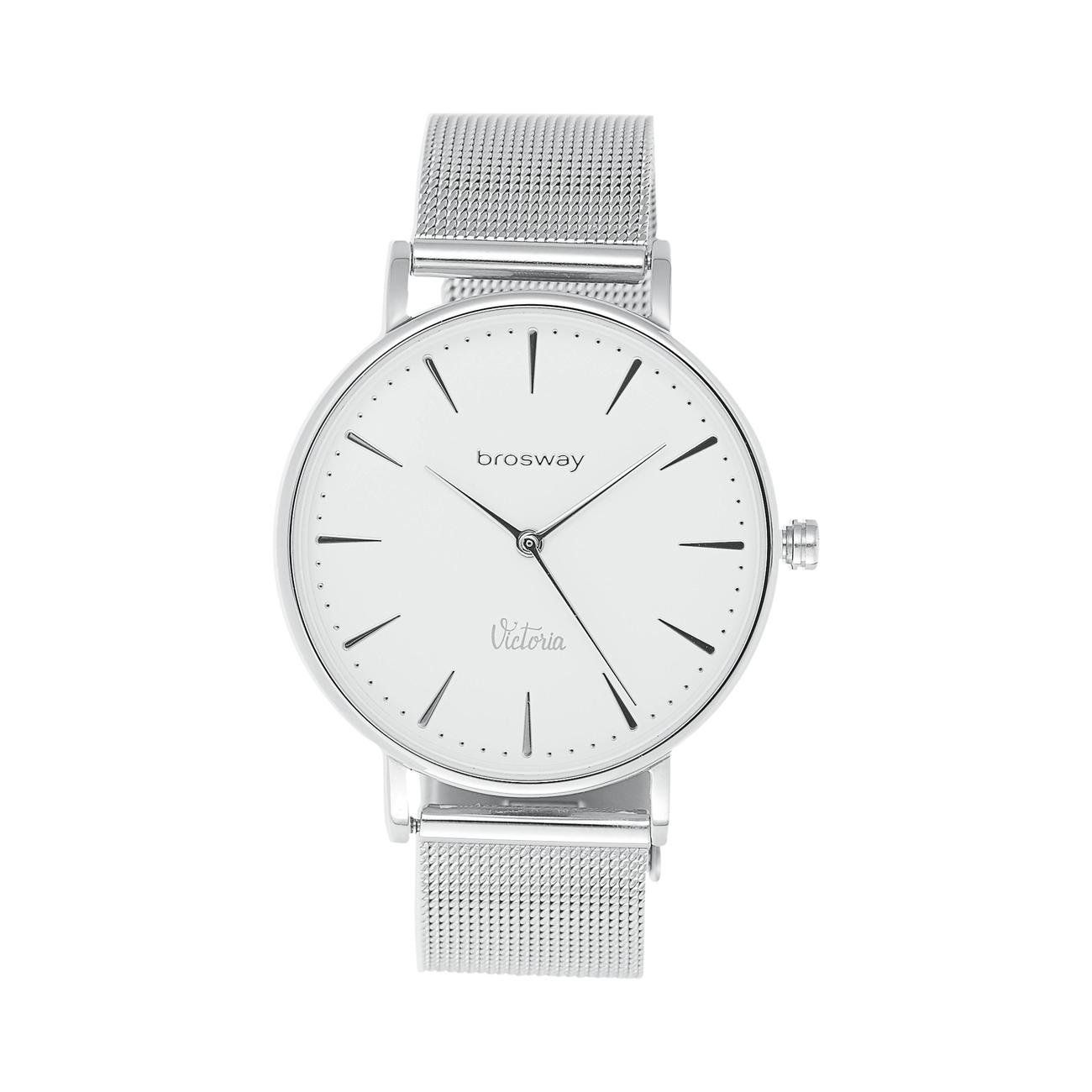 Orologio in acciaio e quadrante bianco con cinturino maglia in acciaio.