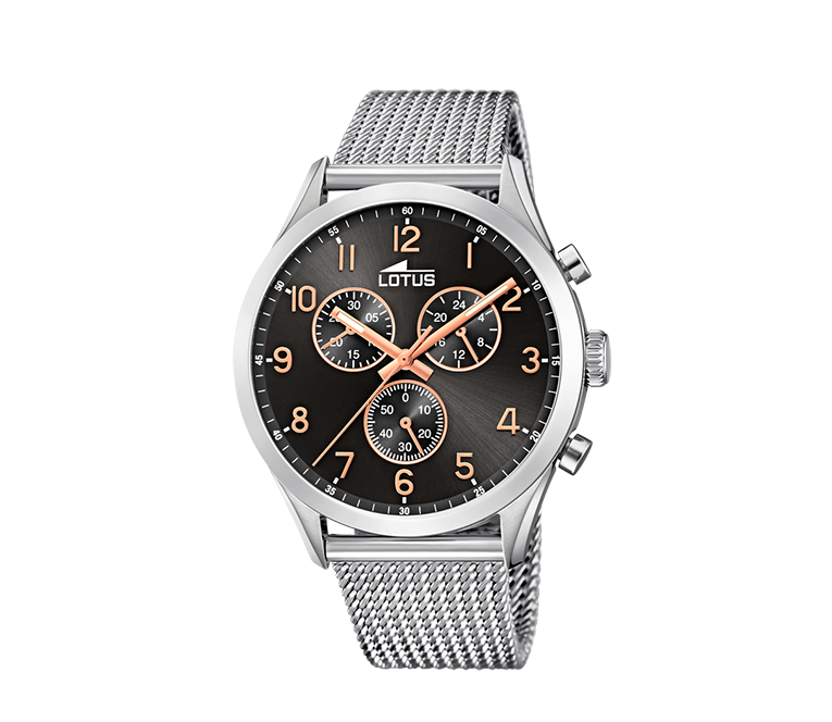 Orologio crono in acciaio 304 con quadrante nero.