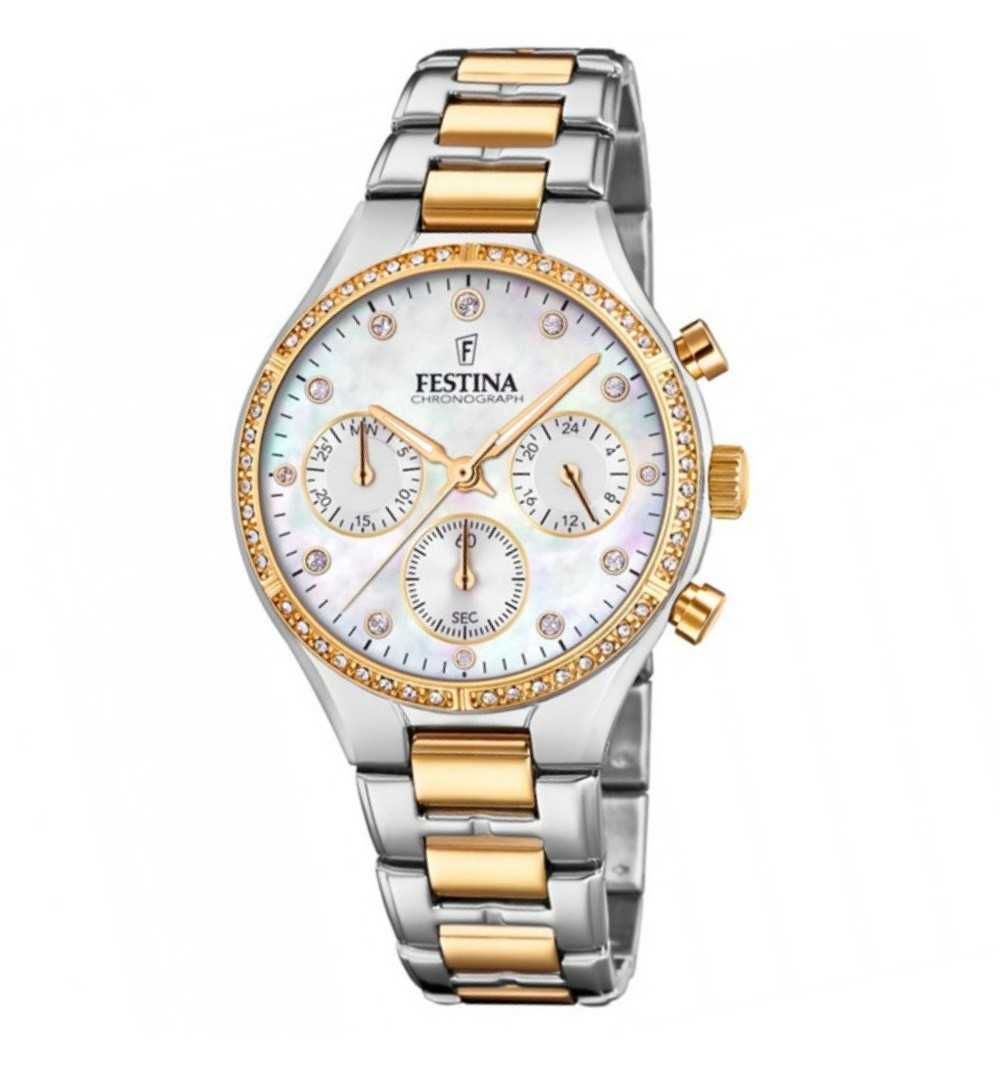 Cassa: acciaio inossidabile, pvd light gold, diametro ø34mm, corona a pressione, vetro minerale, ghiera diamantata