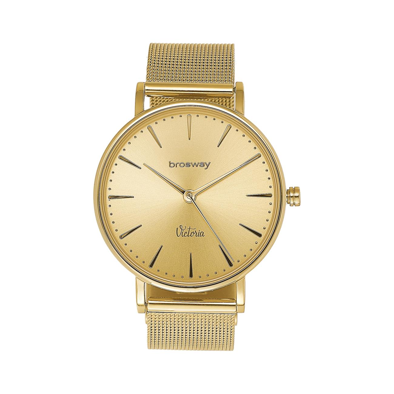 Orologio in acciaio e quadrante oro con cinturino in maglia acciaio e pvd oro.