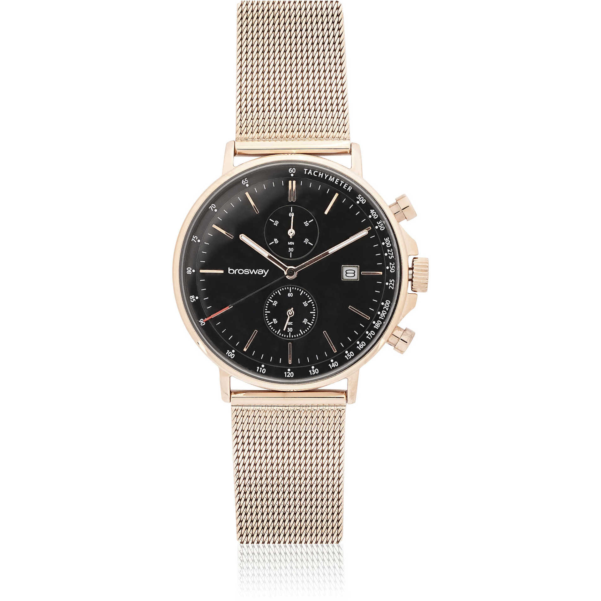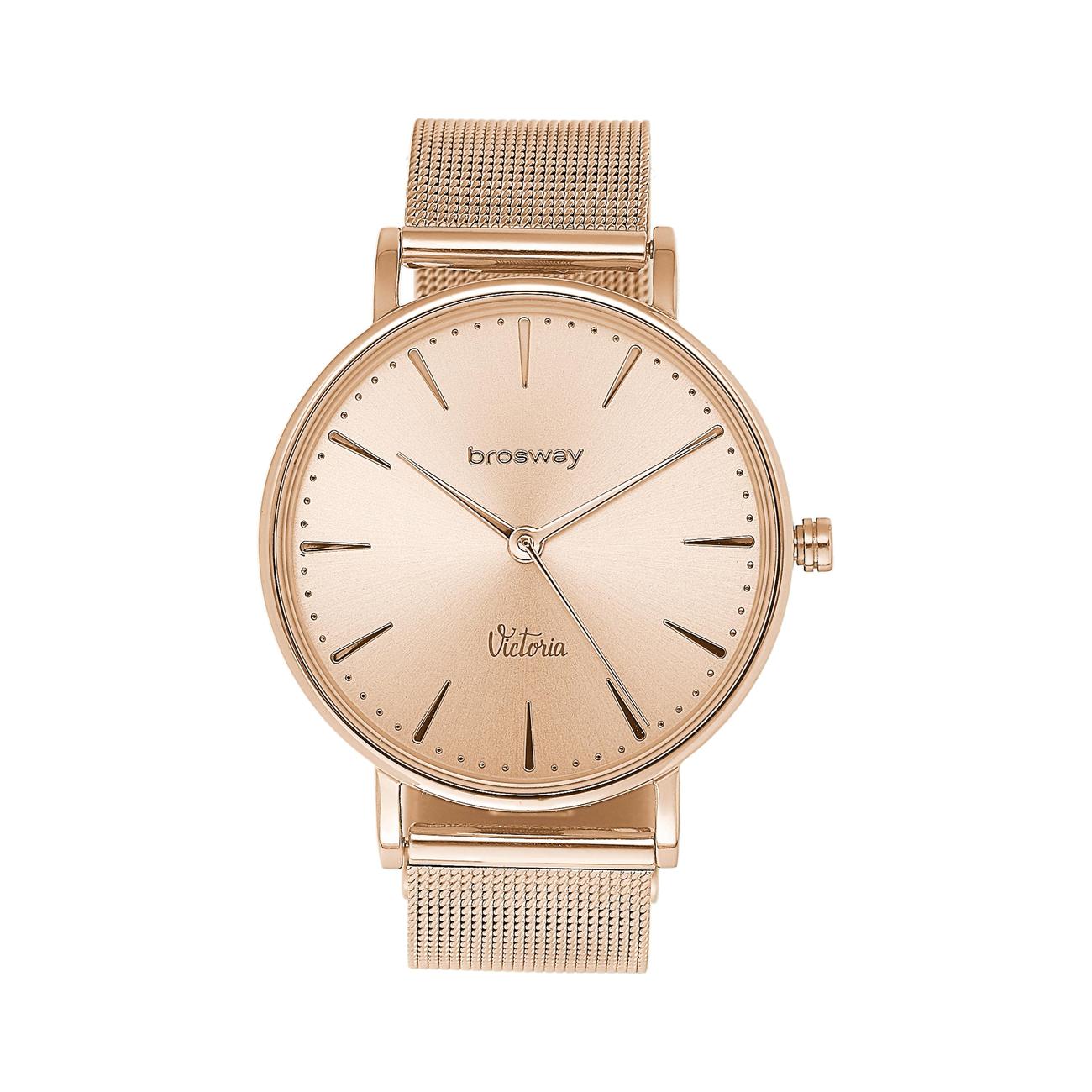 Orologio in acciaio e quadrante sunray oro rosa con cinturino in maglia e pvd oro rosa.