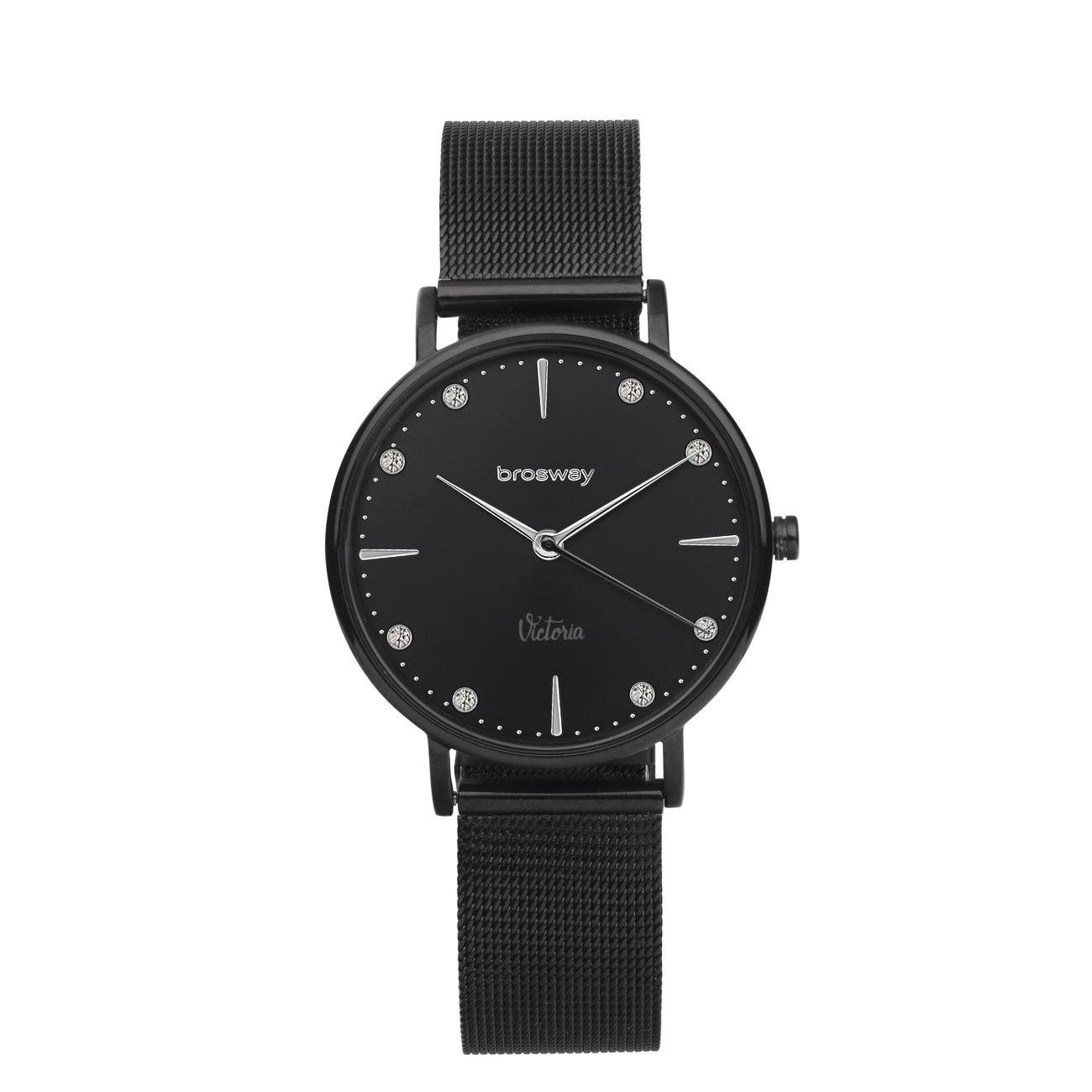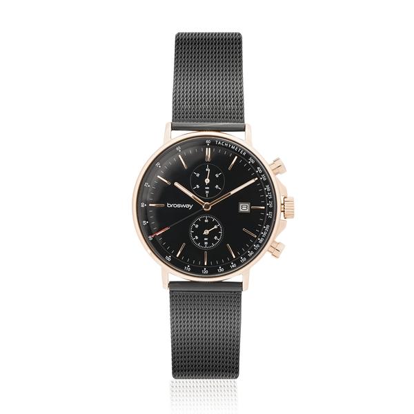Confezione composta da un orologio in acciaio 304 e pvd nero, quadrante copper nero, pvd nero con cristalli, cinturino in pvd nero e da un bracciale in pvd oro rosa.