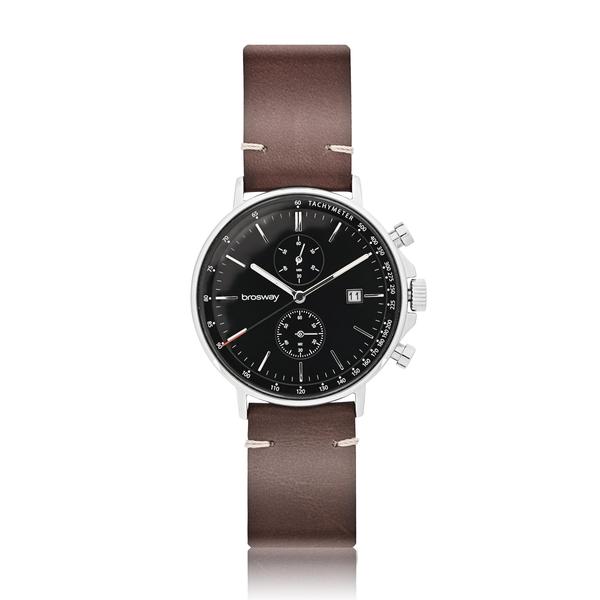 Orologio crono in acciaio 304 con quadrante NERO e cinturino in pelle marrone.