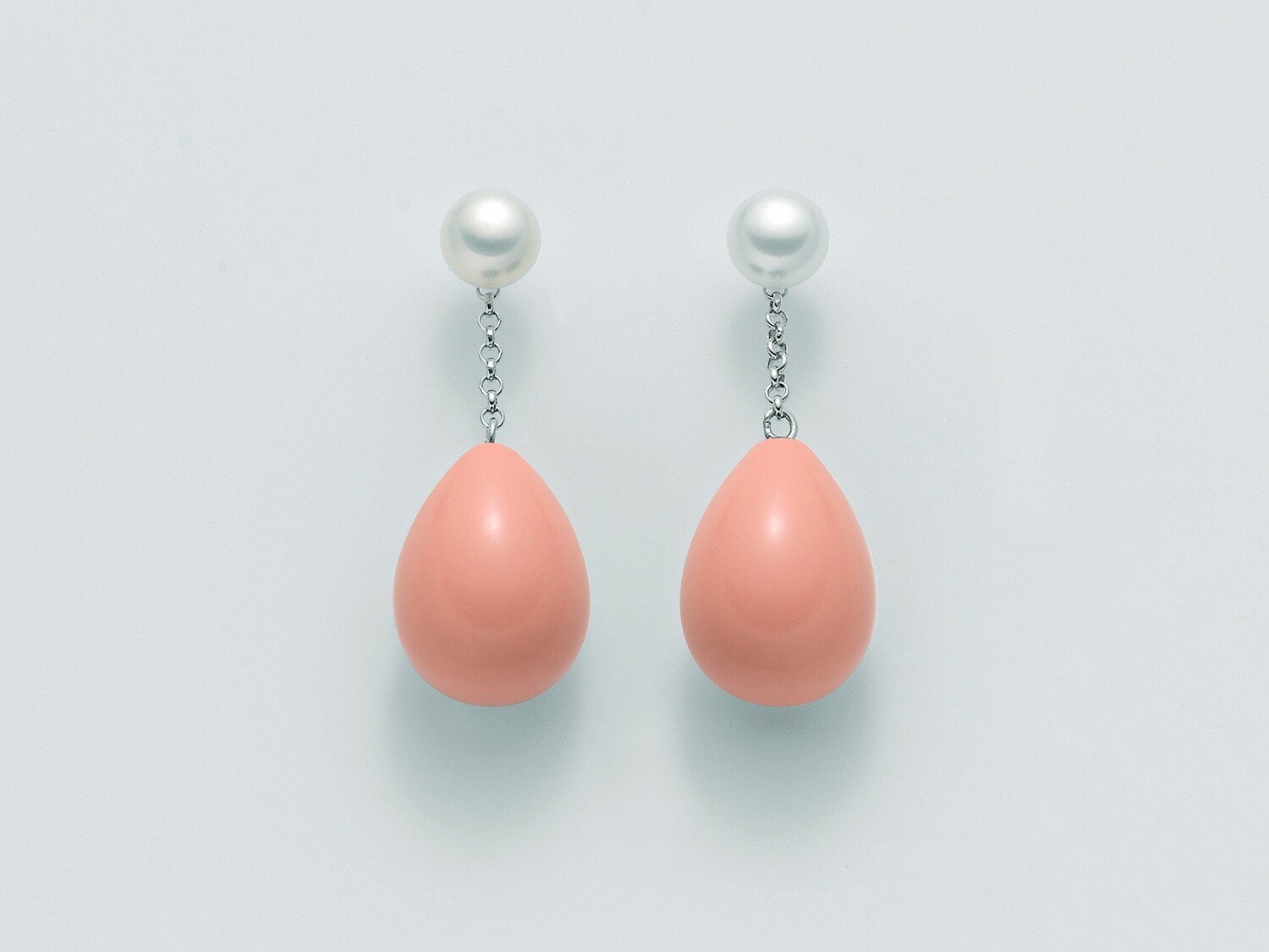 Orecchini argento 925/1000 Nr 2 perle bottone mm 6,5-7. Nr 2 corallo rosa goccia mm 13x18